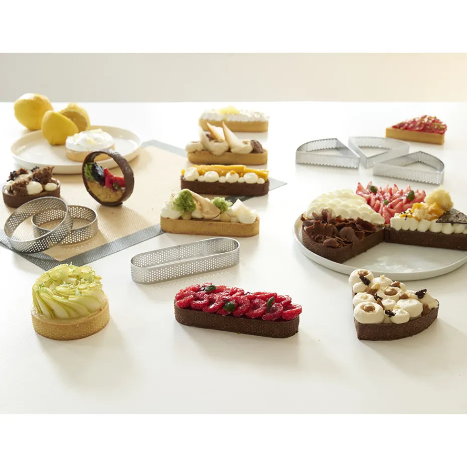 Réalisez de superbes pâtisseries avec ce lot de 6 cercles à tarte perforés.
