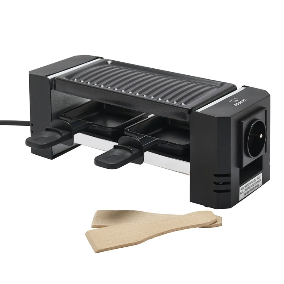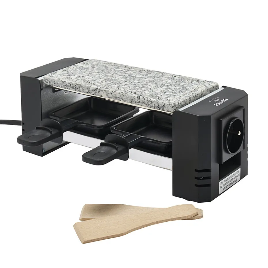 Bien plus qu’un simple appareil à raclette, cet appareil est également doté de 2 plaques interchangeables : une pierre à cuire et une plaque grill…pratique pour y cuire vos morceaux de viandes, griller vos légumes et maintenir vos pommes de terre chaudes.