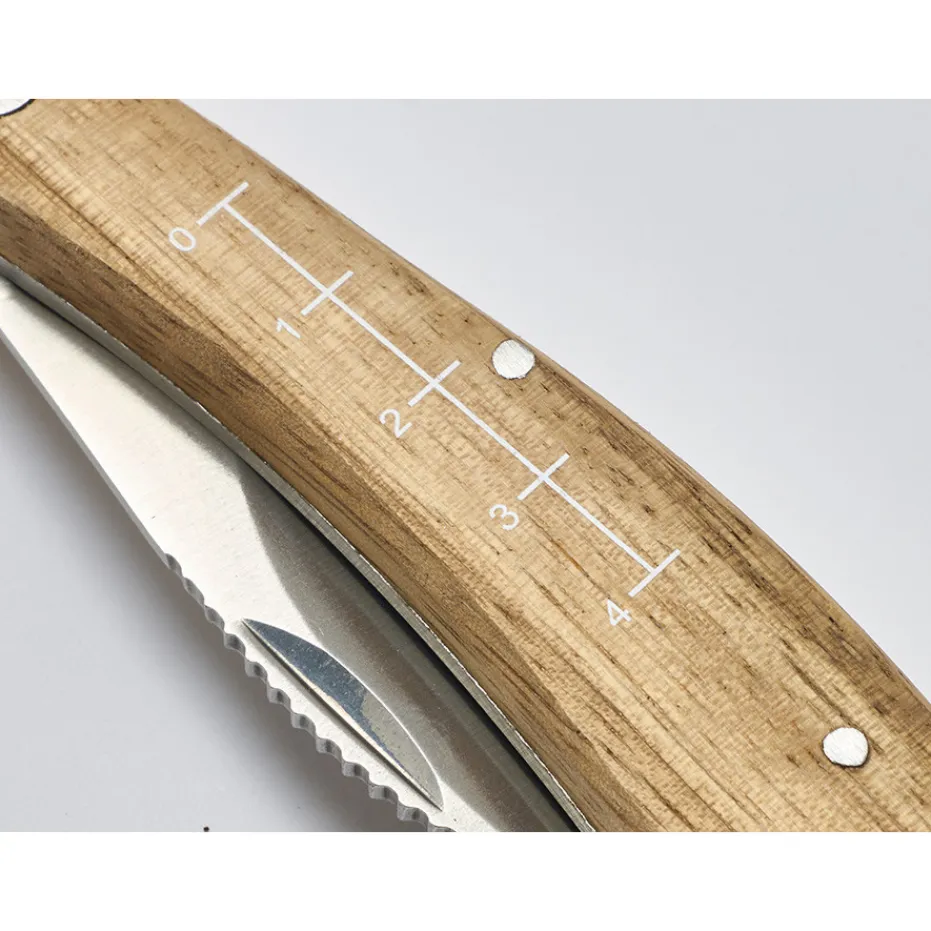 Et ce n’est pas tout ! Ce couteau possède un manche en bois exotique gradué pour vous permettre de mesurer les champignons. Cet aspect du couteau est essentiel car dans certaines régions, en fonction du type de champignon, il y a une taille à respecter lors de la cueillette.