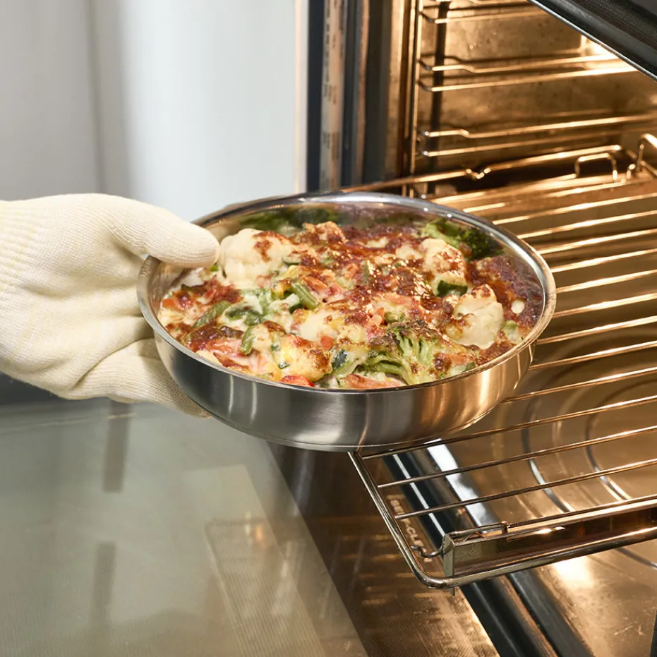Idéales pour saisir vos viandes et cuire vos poissons, elles peuvent aussi s’utiliser au four pour vos gratins. Conçues en acier inoxydable, ces poêles sont dotées d’un fond sandwich renforcé qui assure une diffusion et une répartition optimale de la chaleur.
