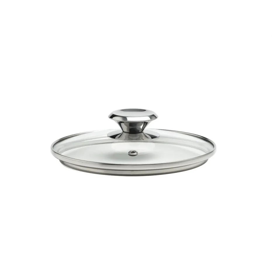 Son couvercle en verre permet de surveiller facilement la cuisson et de l’ôter si besoin grâce à sa poignée bouton.