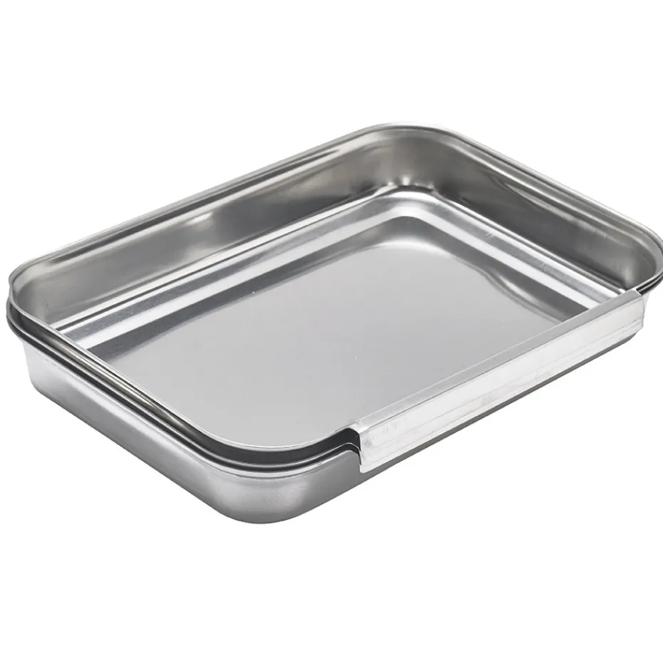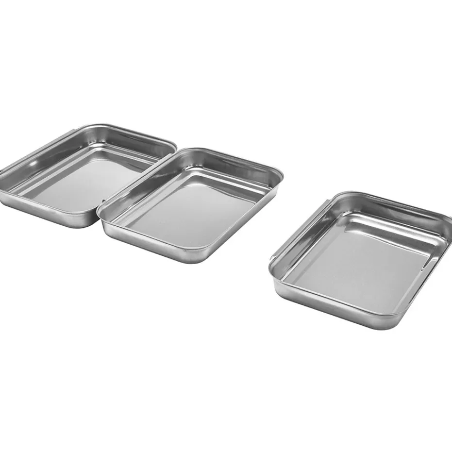 Réalisez vos panures en toute facilité avec cet ensemble de 3 plats en acier inoxydable. Pratiques, ils s’emboitent pour faciliter le passage des aliments entre chaque plat sans salir votre plan de travail.