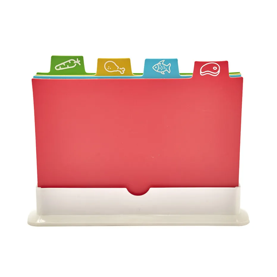 Ces 4 planches à découper sont livrées avec leur support de rangement qui maintient les planches à part pour un séchage rapide et un rangement optimal.