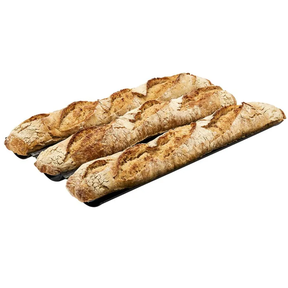 Grâce à ce moule à baguettes perforé, réalisez 3 belles baguettes croustillantes en une seule fournée.