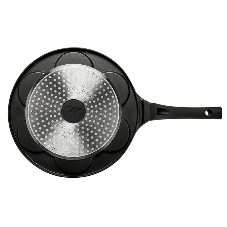 Conçue spécialement pour les blinis, mini crêpes ou encore pancakes, cette poêle vous assure une cuisson dorée sans attacher. Dotée d’un revêtement antiadhérent, elle ne nécessite pas de matière grasse.