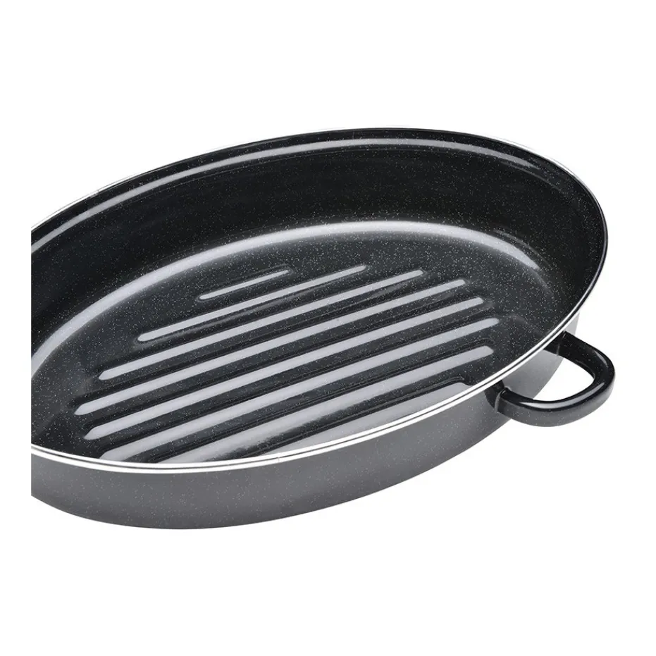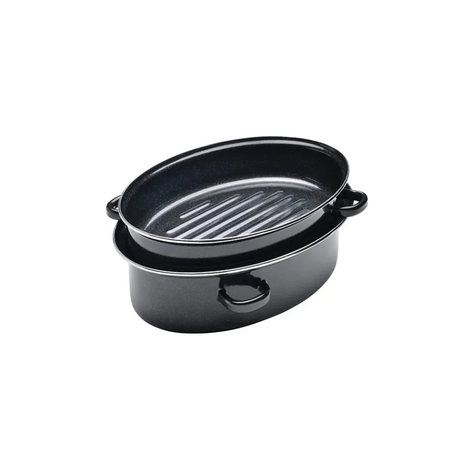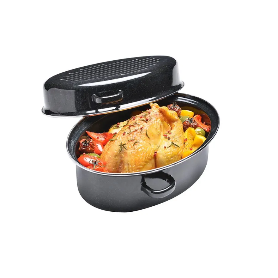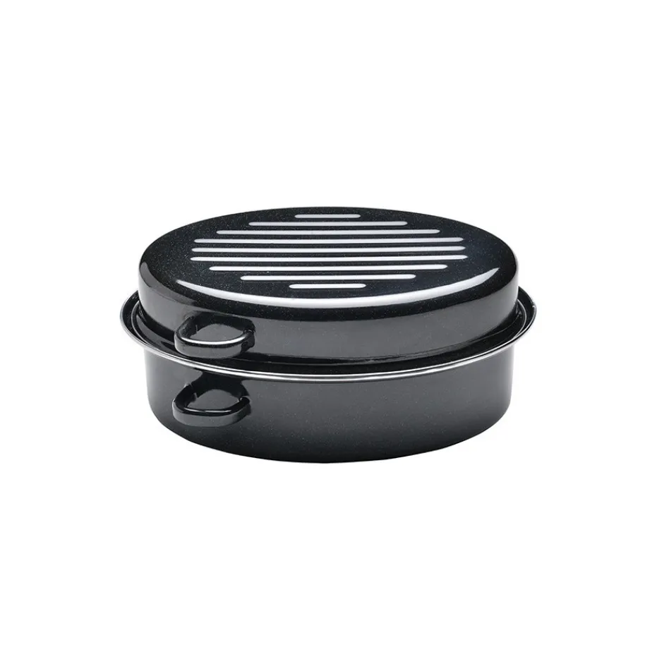 Cette rôtissoire, en acier émaillé de 38 cm, sera parfaite pour la cuisson de vos viandes et plats en sauce.