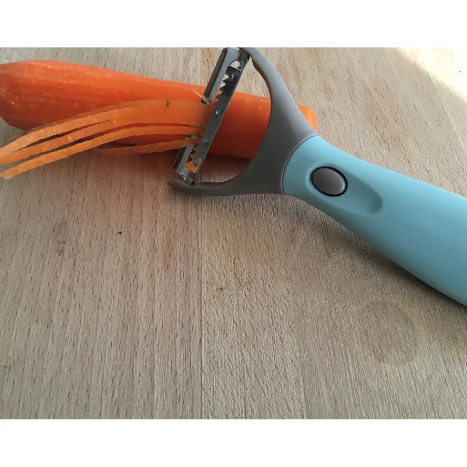 Grâce à ces 3 têtes interchangeables, cet économe vous permet de préparer de délicieuses juliennes de légumes, d’éplucher des fruits et légumes à peau très fine tel que la pomme de terre ou la carotte, mais aussi d’éplucher des légumes ou fruits à peau plus épaisse tel que les tomates ou les kiwis.