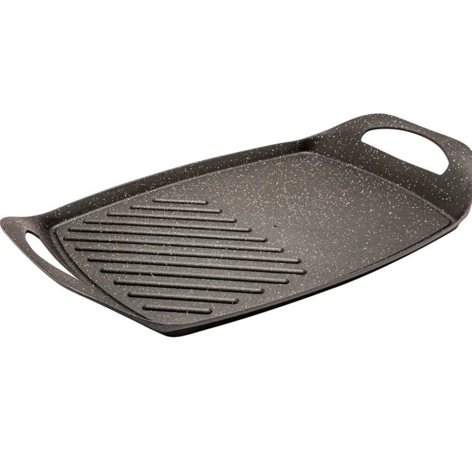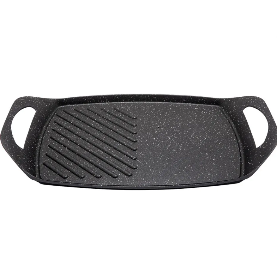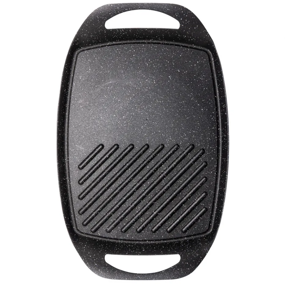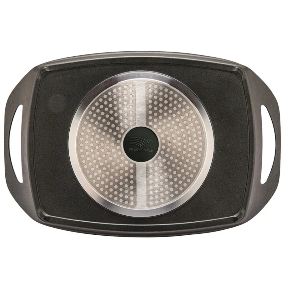 Cette plancha en fonte d’aluminium, vous offre un côté strié pour griller et un côté lisse pour saisir.