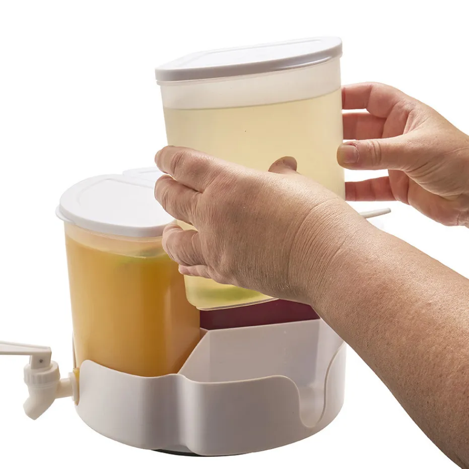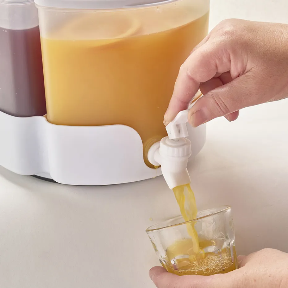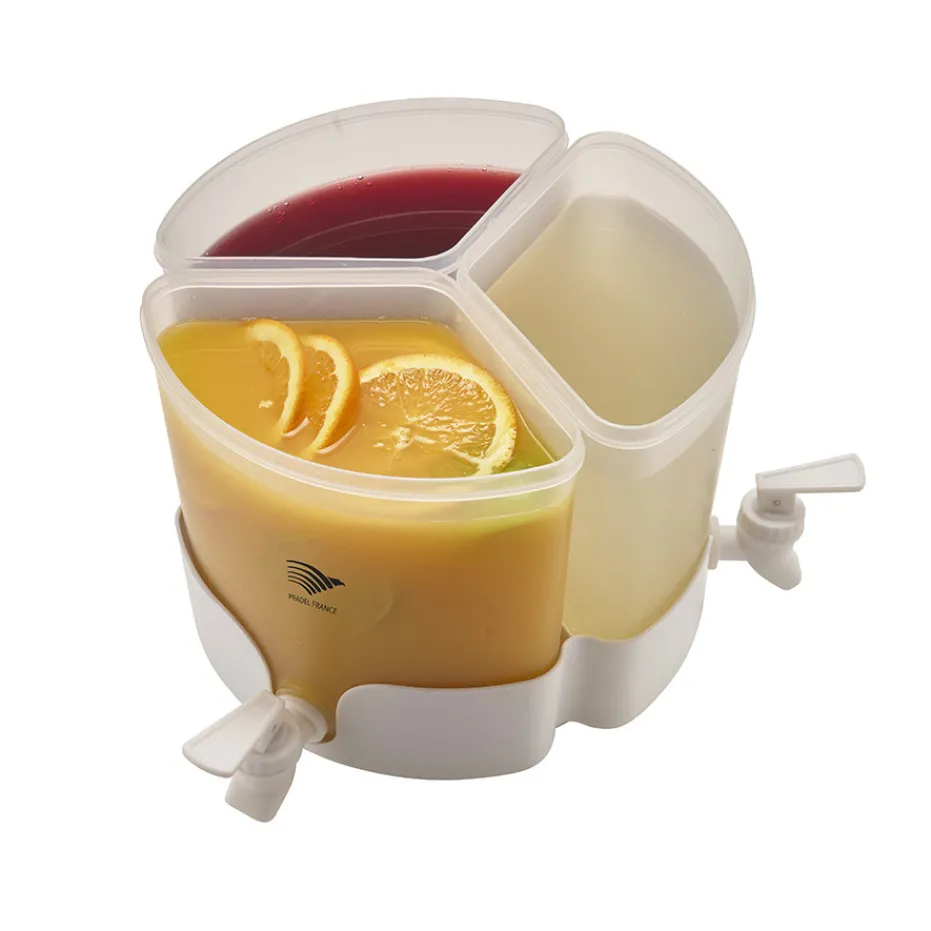 Idéal pour vos moments de partage, ce distributeur de boisson est doté de 3 compartiments distincts et de 3 robinets, permettant de conserver et servir simultanément trois saveurs différentes. Sa base rotative facilite l’accès à chaque compartiment, tandis que le robinet à poussoir assure une distribution rapide et sans effort. Parfait pour le réfrigérateur, il garde vos boissons favorites bien fraîches pour toutes les occasions.