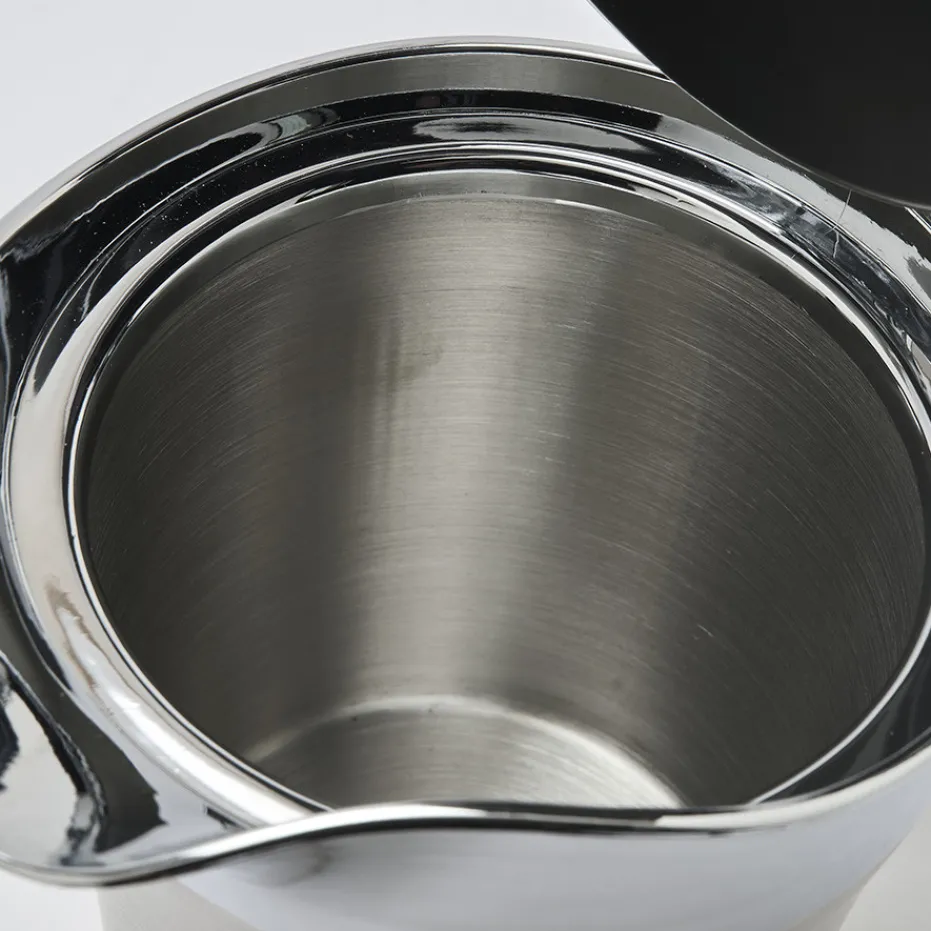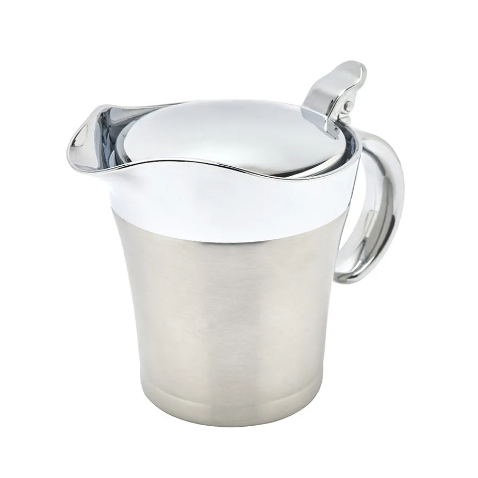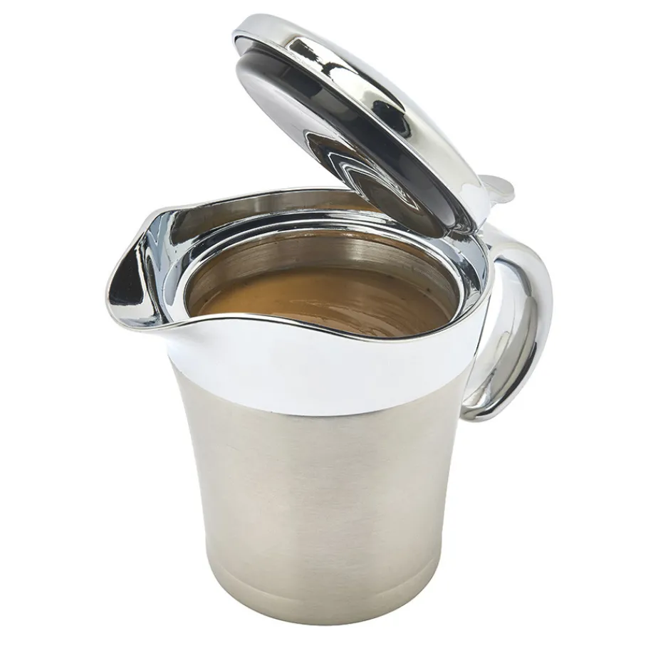 Son couvercle isolant rabattable permet un service à une main et évite également qu’une peau inesthétique se forme sur votre sauce.