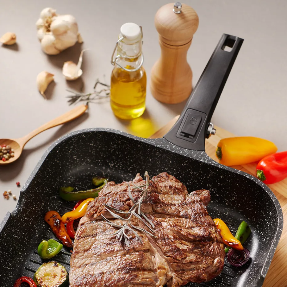 Compatible avec les poêles grill, poêles, crêpière, sauteuses, woks et casseroles de la gamme Fonte d’aluminium 3 couleurs.